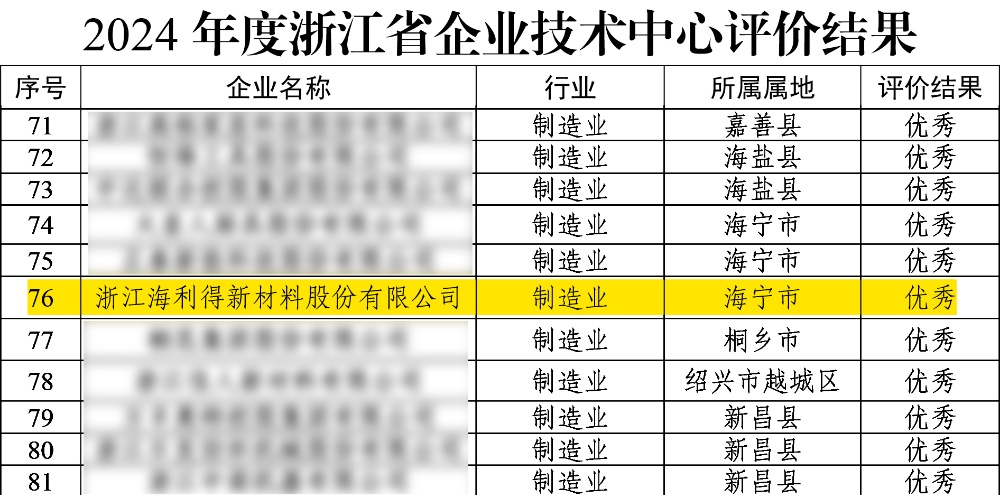近日,浙江省經(jīng)濟(jì)和信息化廳、浙江省財(cái)政廳、國家稅務(wù)總局浙江省稅務(wù)局和中華人民共和國杭州海關(guān)聯(lián)合公布了制造業(yè)領(lǐng)域2024年度浙江省企業(yè)技術(shù)中心評(píng)價(jià)結(jié)果,海利得順利通過復(fù)評(píng),評(píng)級(jí)等級(jí)為優(yōu)秀。