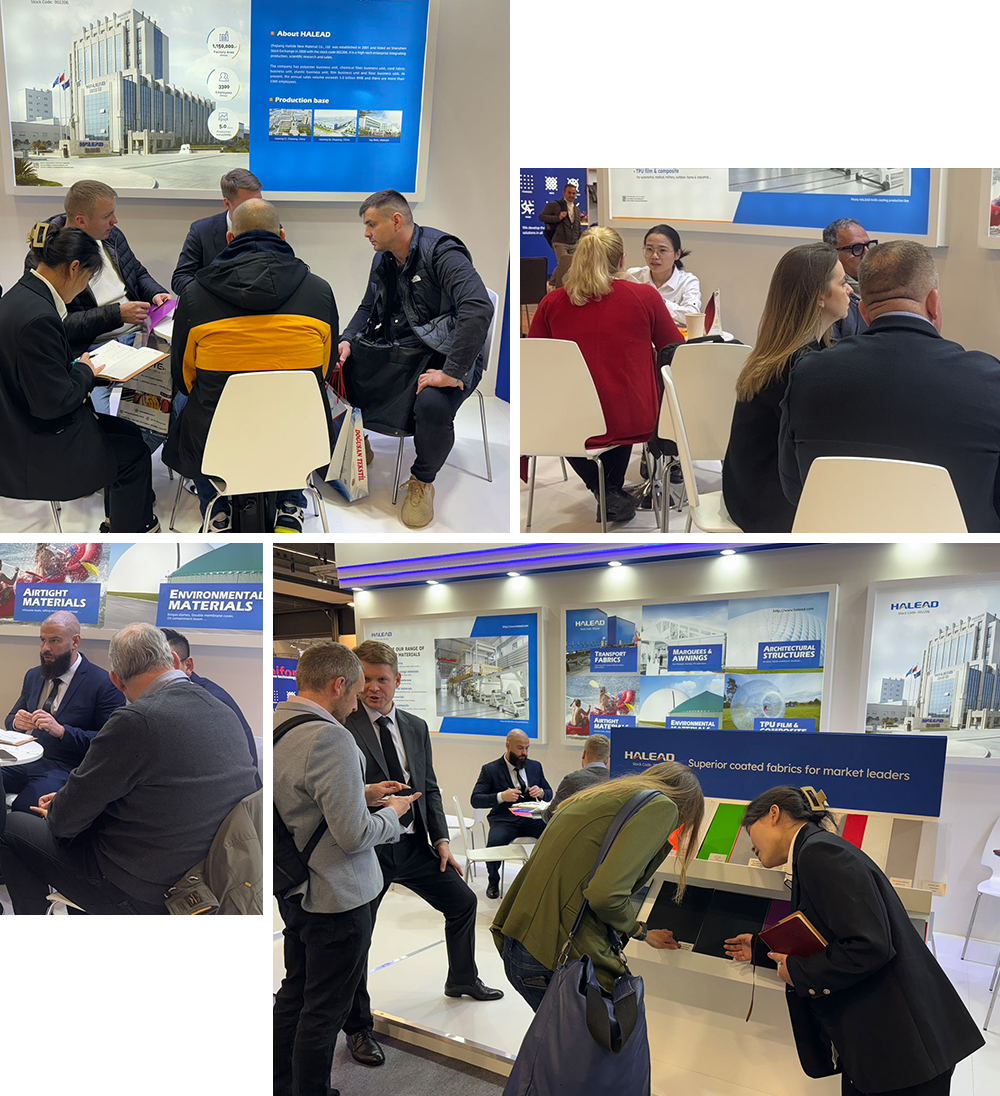 展會(huì)期間,公司接待了來自歐洲、土耳其、印度、美洲、南非、日本等國(guó)家的200余名新老客戶。同時(shí),我們還捕捉到英國(guó)、土耳其等非歐盟國(guó)家對(duì)篷布產(chǎn)品的需求有激增的趨勢(shì),這為我們?cè)趪?guó)際市場(chǎng)上的擴(kuò)展提供了機(jī)遇和潛力。